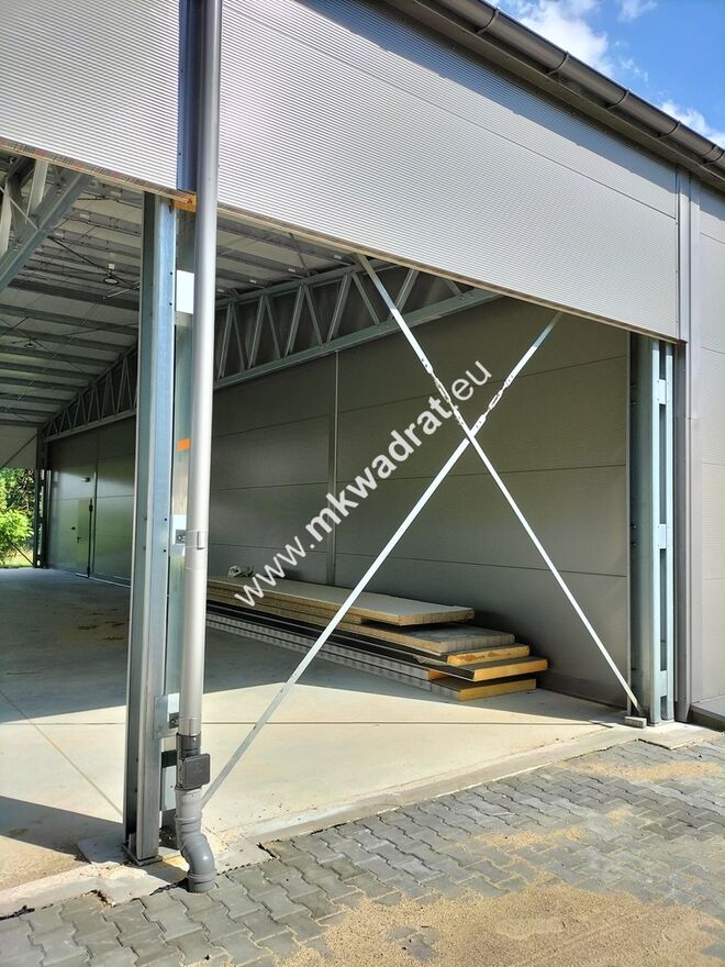 Wysokość magazynu w szczycie to 6,20 m. Posadzka zrobiona z betonu